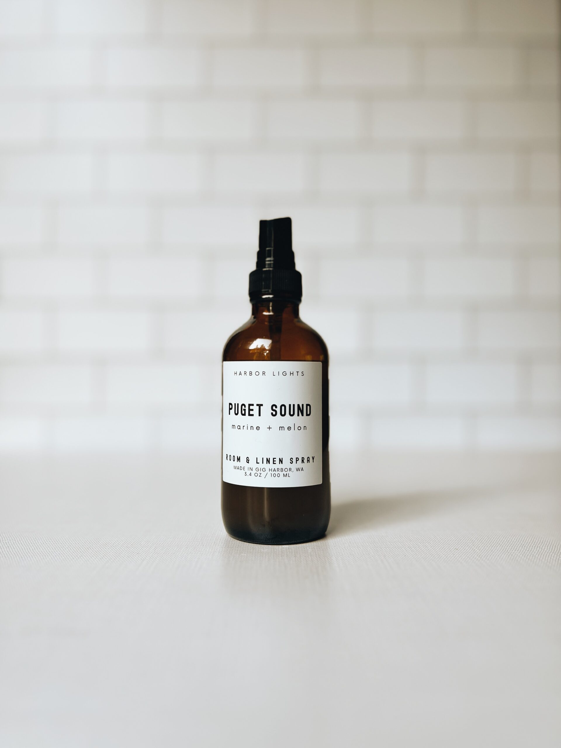 Bring the serene beauty of the Pacific Northwest into your home with Puget Sound, a refreshing room and linen spray inspired by the coastal charm of Gig Harbor. This refreshing scent opens with crisp marine notes, honeydew melon, and fresh apple—cool, clean, and inviting. A soft floral heart of jasmine and lily of the valley adds an elegant touch, while a base of sandalwood and musk brings warmth and depth to this serene coastal escape.
